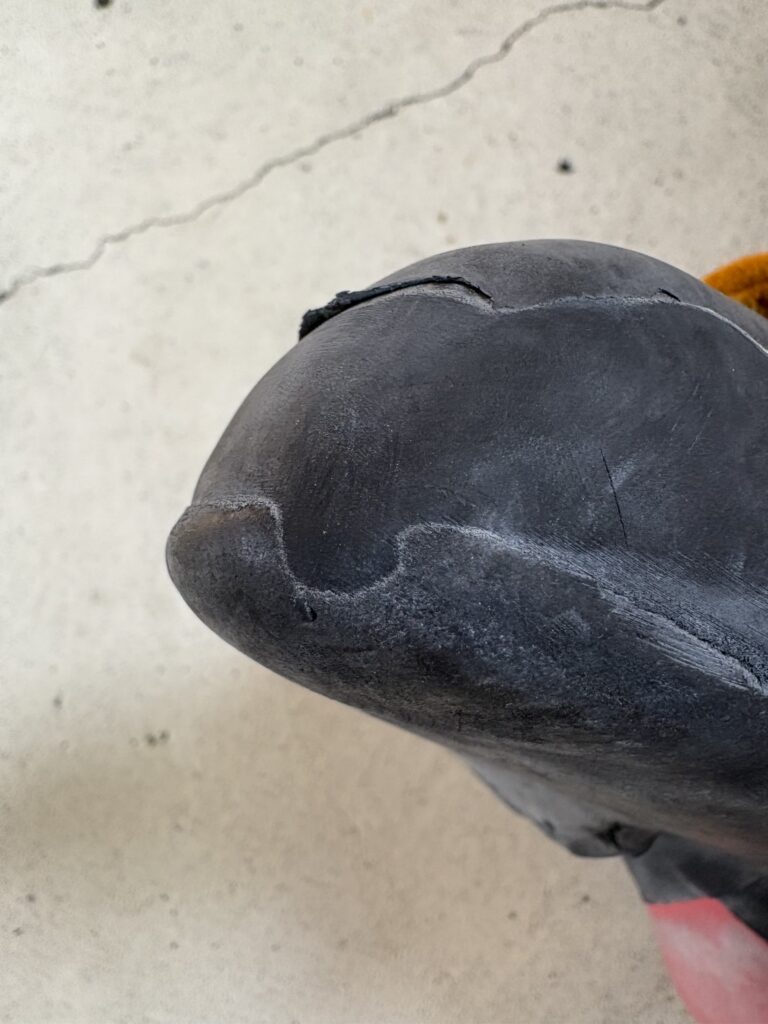 この靴は親指付近のソールがすっかり無くなっています。これ以上登ると甲のゴム部分が削れてしまうので至急リソールした方が良いですね。